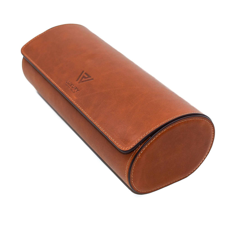 The innovative luxury design of our watch rolls allows watches to be stored in a high quality, entirely handcrafted roll. The exterior of the watch roll is made using the finest vegetable tanned leather, and each edge is hand oil painted. The use of this style of edge finishing removes the possibility of frayed edging providing the highest durability. The contrasting deep brown interior of the watch roll is the softest material for maximum protection against scratches. Each watch pillow is removable on a sliding rail for easy access (with no metal snaps to risk damaging your watch). Each pillow has its own individual compartment inside the watch roll, with sturdy fixed separators providing the greatest protection against damage. The watch roll has a flat base to prevent unintentional rolling or tipping.